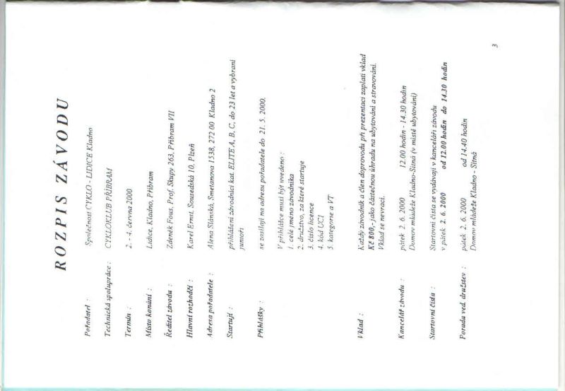 Rozpis závodu